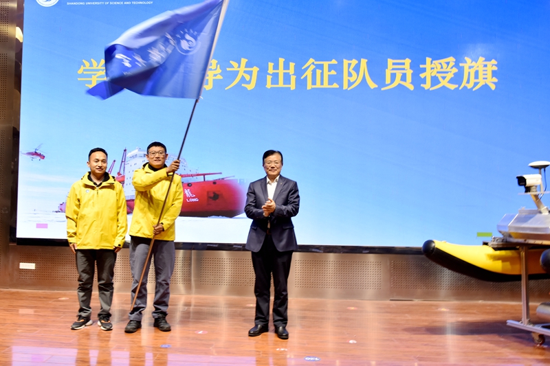 徐龙飞为科考队员、jdb电子官网青年教师杨继超、魏峥嵘授旗。他指出,南极科考事业是为国争光的事业,是高校服务国家的重要工作。他向无人船研制取得的成果表示祝贺,向关心支持学校发展的企业公司表示衷心的感谢,学校将继续服务于国家海洋战略,积极支持极地智能无人船的科考事业。