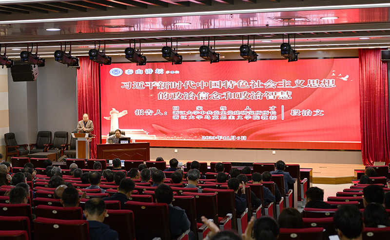 11月7日,学校举办“泰山讲坛”第43期报告会。国家级人才、浙江大学中共党史党建研究所所长、马克思主义学院段治文教授应邀做客“泰山讲坛”,作题为“深入学习领会习近平新时代中国特色社会主义思想的政治信念和政治智慧”的专题报告。校党委常委、纪委书记夏侯雪娇出席报告会。校党委常委、宣传部部长李克周主持报告会。